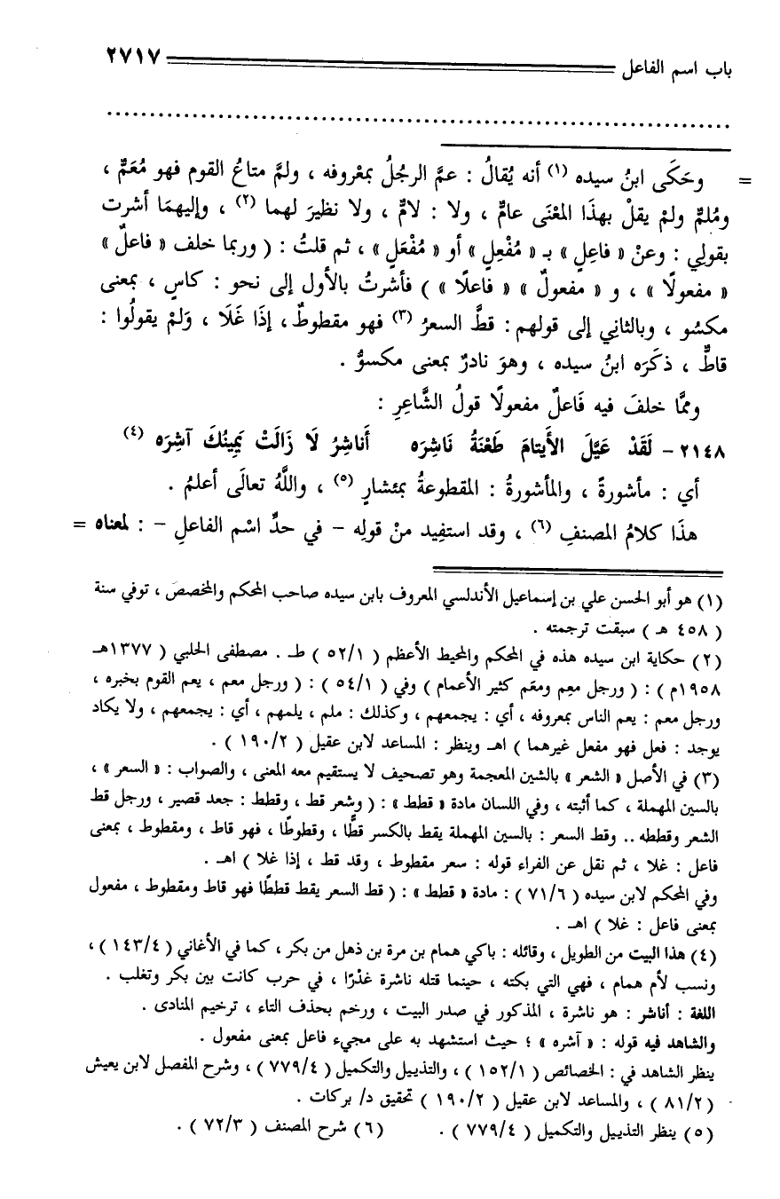 (¬1) هو أبو الحسن علي بن إسماعيل الأندلسي المعروف بابن سيده صاحب المحكم والمخصص، توفي سنة (458 هـ) سبقت ترجمته.