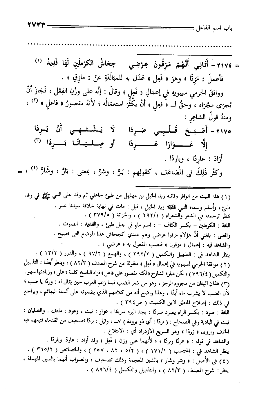 (¬2) موافقة الجرمي لسيبويه في إعمال «فعل» منقولة عن شرح المصنف (3/ 82)، وينظر أيضا: التذييل والتكميل (4/ 796)، لكن عبارة الشارح «لكنه مقصور على فاعل» فزاد الناسخ كلمة «على» وزيادتها سهو.