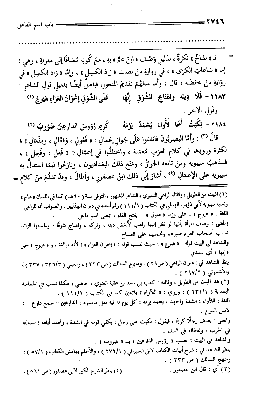 ينظر الشاهد في: ديوان الراعي (ص 29)، ومنهج السالك (ص 333)، والعيني (3/ 336، 337)، والأشموني (2/ 297).