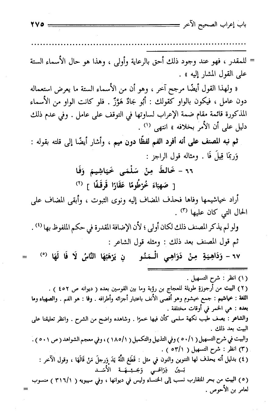 (¬5) البيت من بحر المتقارب نسب إلى الخنساء وليس في ديوانها، وفي سيبويه (1/ 316) منسوب لعامر بن الأحوص. -