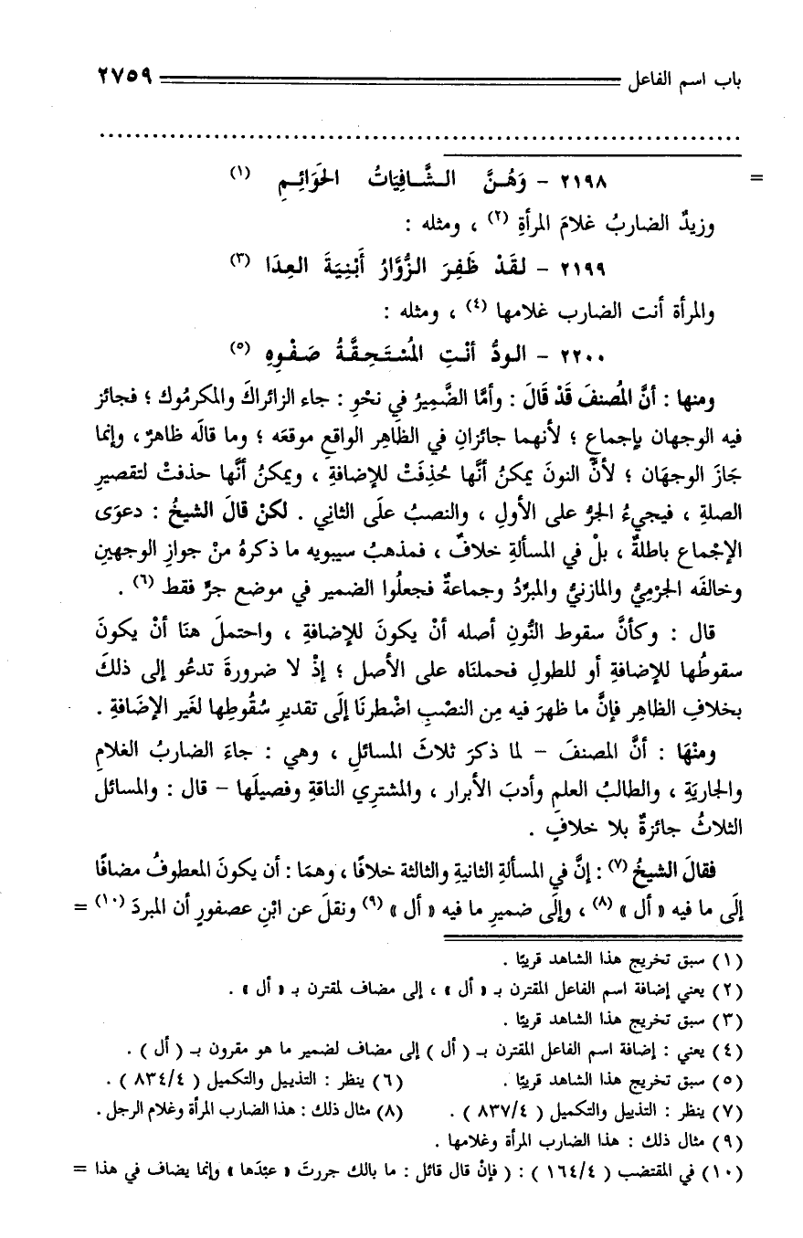 (¬2) يعني إضافة اسم الفاعل المقترن بـ «أل»، إلى مضاف لمقترن بـ «أل».