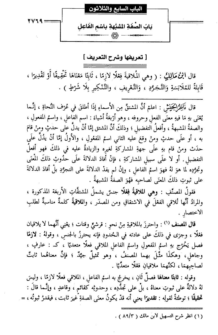 الباب السابع والثلاثون باب الصّفة المشبّهة باسم الفاعل