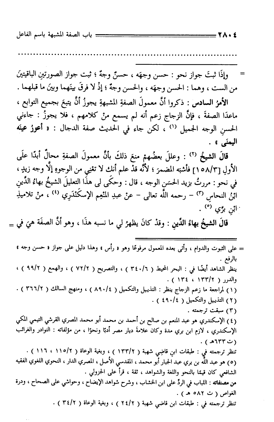 قال الشيخ بهاء الدّين: وقد كان يظهر لي ما نسبه هذا، وهو أنّ الصفة هي في -