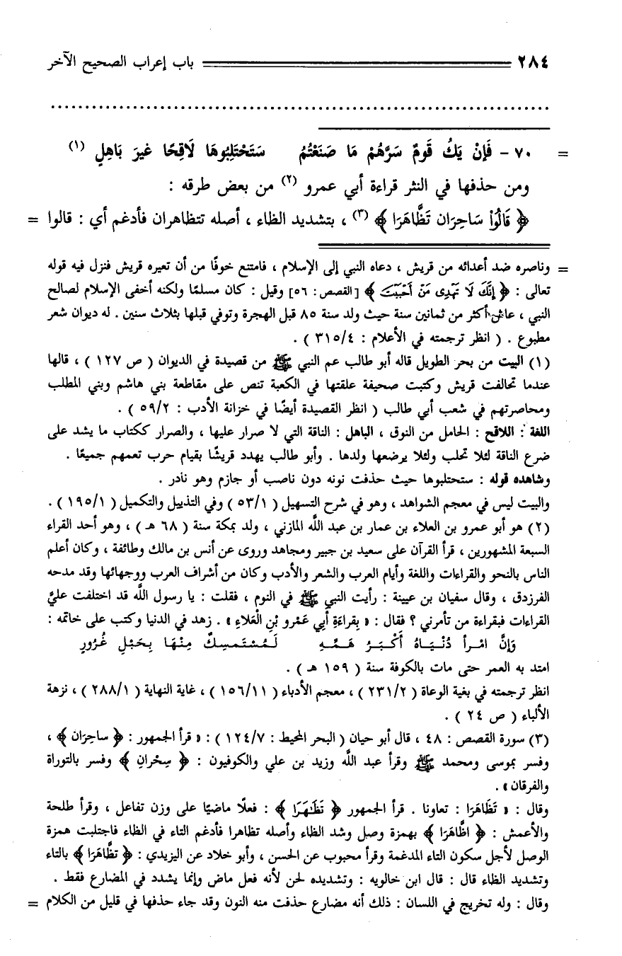 قالوا ساحران تظاهرا (¬3)، بتشديد الظاء، أصله تتظاهران فأدغم أي: قالوا -
