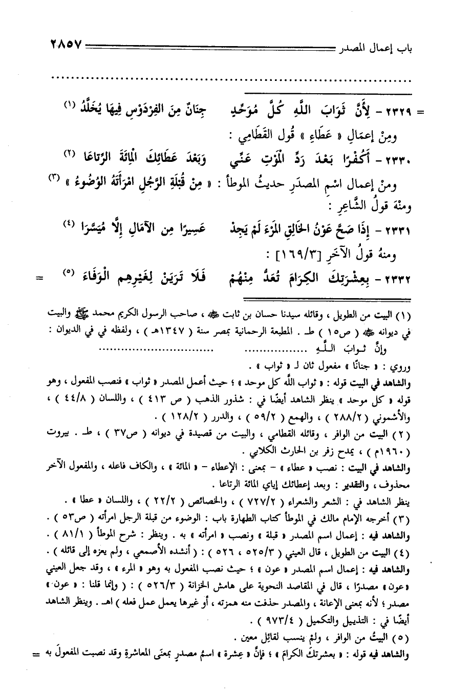 ومن إعمال اسم المصدر حديث الموطأ: «من قبلة الرّجل امرأته الوضوء» (¬3) ومنه قول الشّاعر: