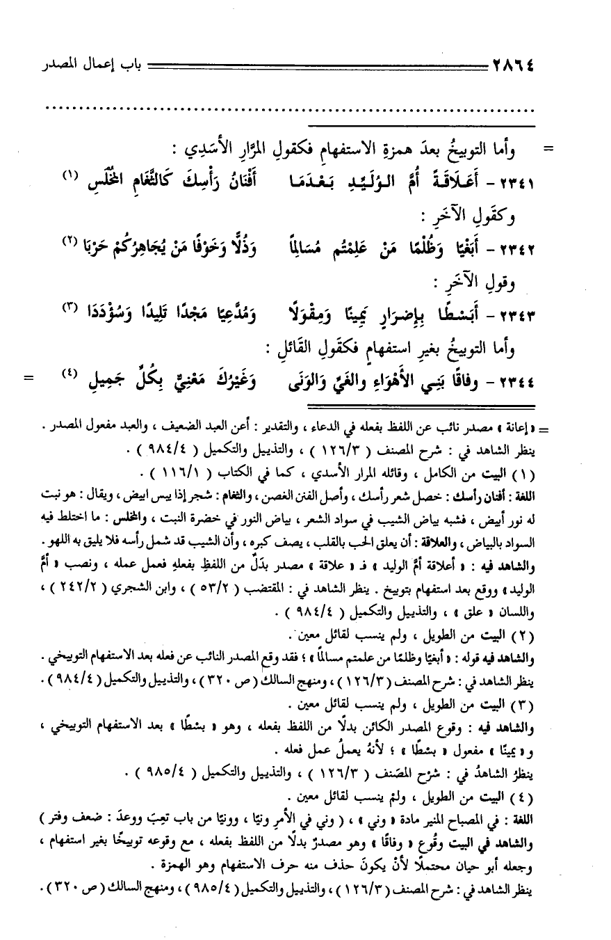 2342 - أبغيا وظلما من علمتم مسالما ... وذلّا وخوفا من يجاهركم حربا (¬2)