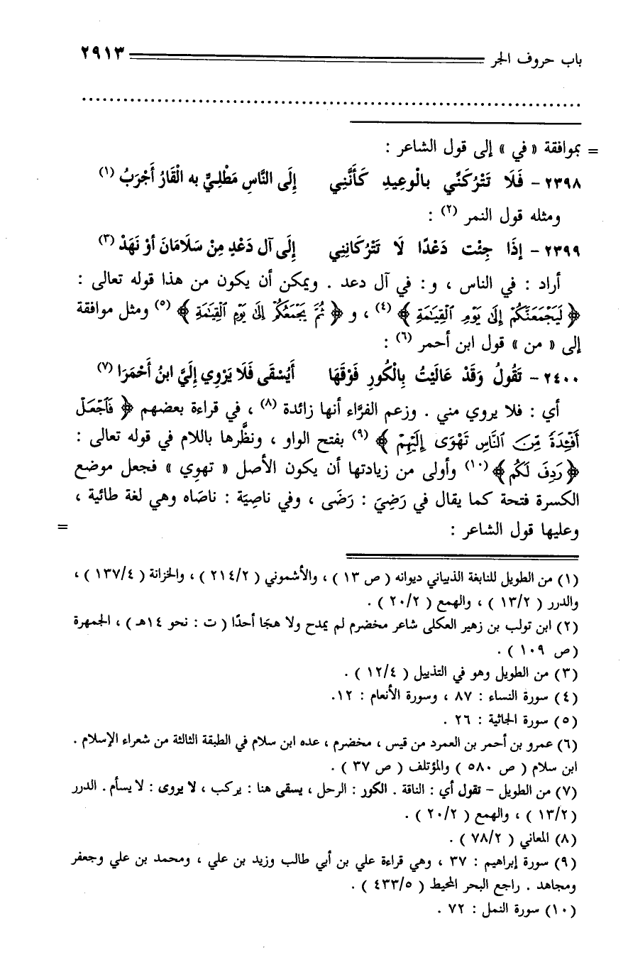 لَيَجْمَعَنَّكُمْ إِلى يَوْمِ الْقِيامَةِ * (¬4)، وثُمَّ يَجْمَعُكُمْ إِلى يَوْمِ الْقِيامَةِ (¬5) ومثل موافقة إلى «من» قول ابن أحمر (¬6):