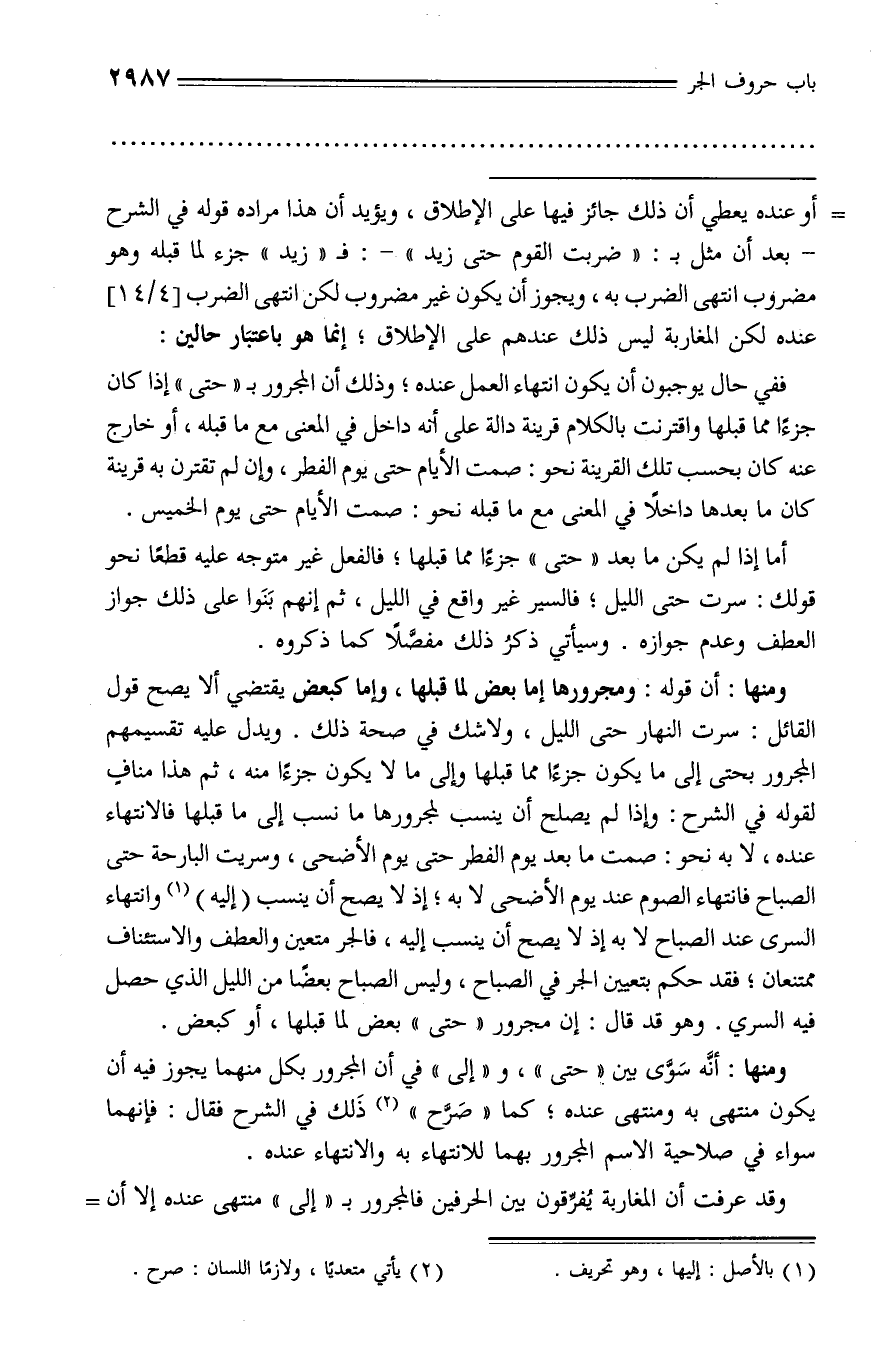 وقد عرفت أن المغاربة يفرّقون بين الحرفين فالمجرور بـ «إلى» منتهى عنده إلا أن -