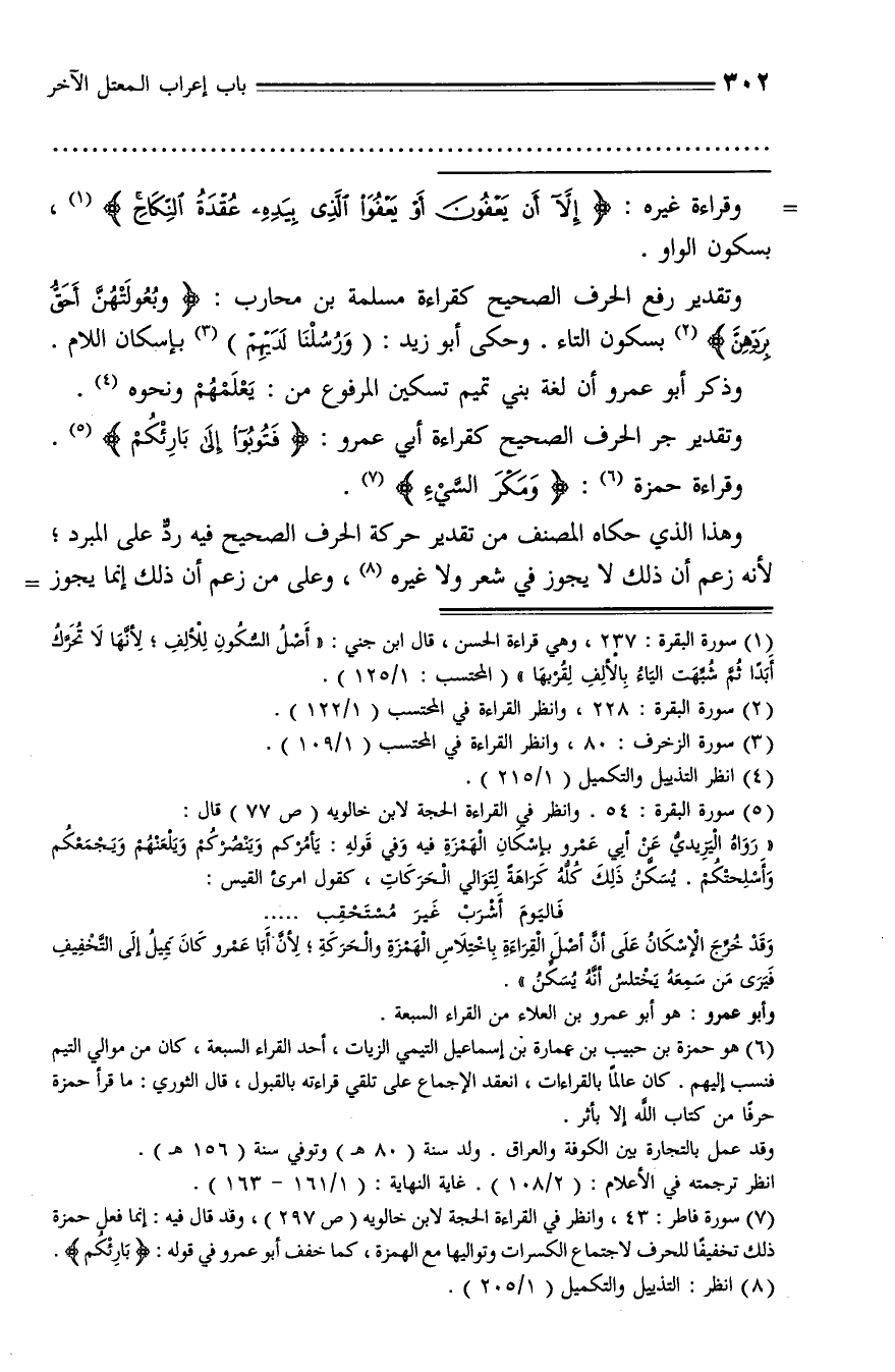 (¬7) سورة فاطر: 43، وانظر في القراءة الحجة لابن خالويه (ص 297)، وقد قال فيه: إنما فعل حمزة ذلك تخفيفا للحرف لاجتماع الكسرات