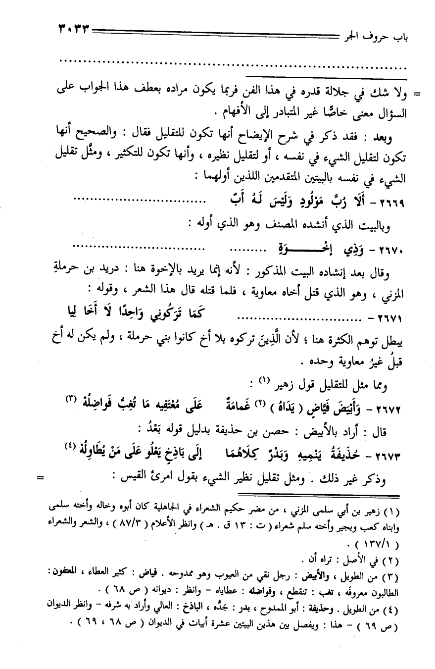 2673 - حذيفة ينميه وبدر كلاهما ... إلى باذخ يعلو على من يطاوله (¬4)