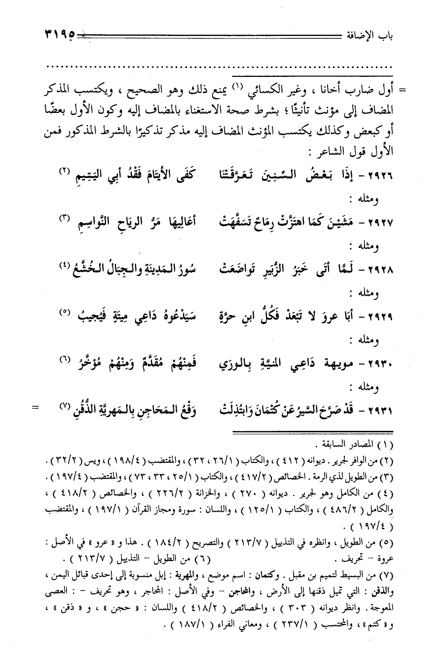 (¬4) من الكامل وهو لجرير. ديوانه (270)، والخزانة (2/ 226)، والخصائص (2/ 418)، والكامل (2/ 486)، والكتاب (1/ 125)، واللسان: سورة ومجاز القرآن (1/ 197)، والمقتضب (4/ 197).