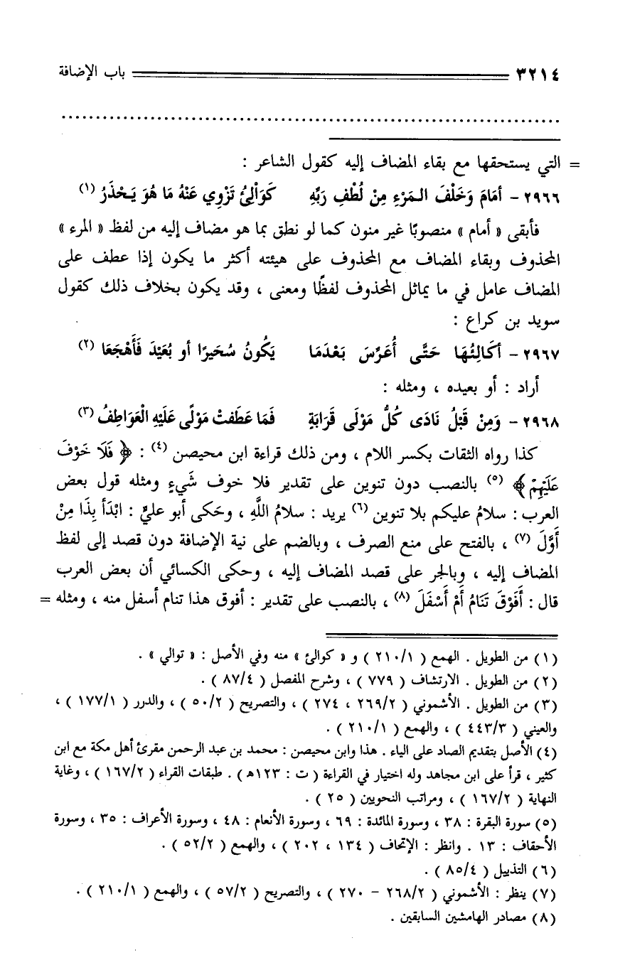 (¬7) ينظر: الأشموني (2/ 268 - 270)، والتصريح (2/ 57)، والهمع (1/ 210).
