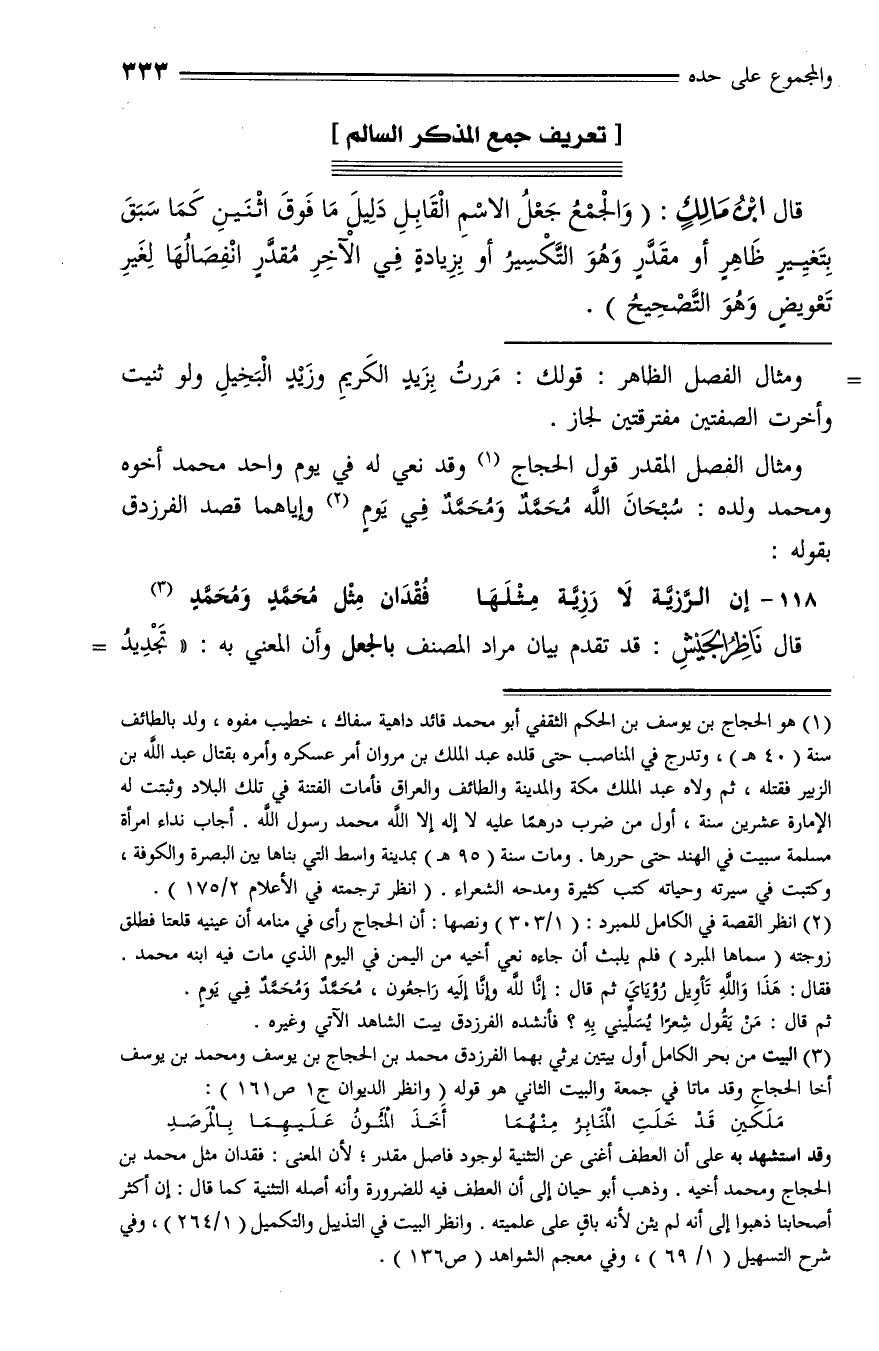 (¬3) البيت من بحر الكامل أول بيتين يرثي بهما الفرزدق محمد بن الحجاج بن يوسف ومحمد بن يوسف أخا الحجاج وقد ماتا في جمعة والبيت الثاني هو قوله (وانظر الديوان جـ 1 ص 161):