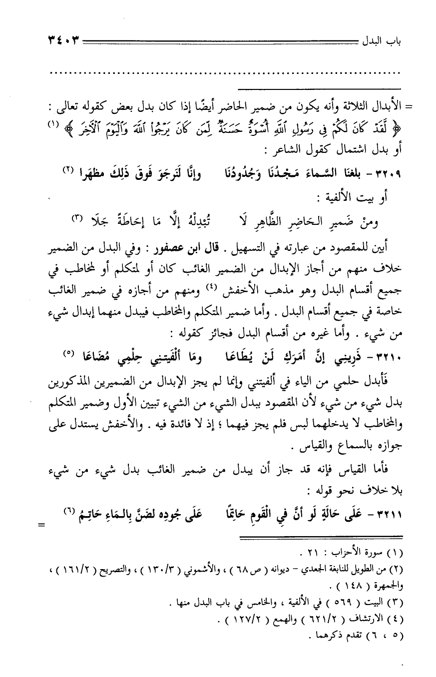 الأبدال الثلاثة وأنه يكون من ضمير الحاضر أيضا إذا كان بدل بعض كقوله تعالى: