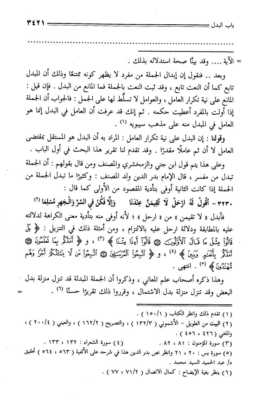 (¬5) سورة يس: 20، 21 وانظر نص بدر الدين هذا في شرحه على الألفية (563، 564) تحقيق د/ عبد الحميد السيد محمد.