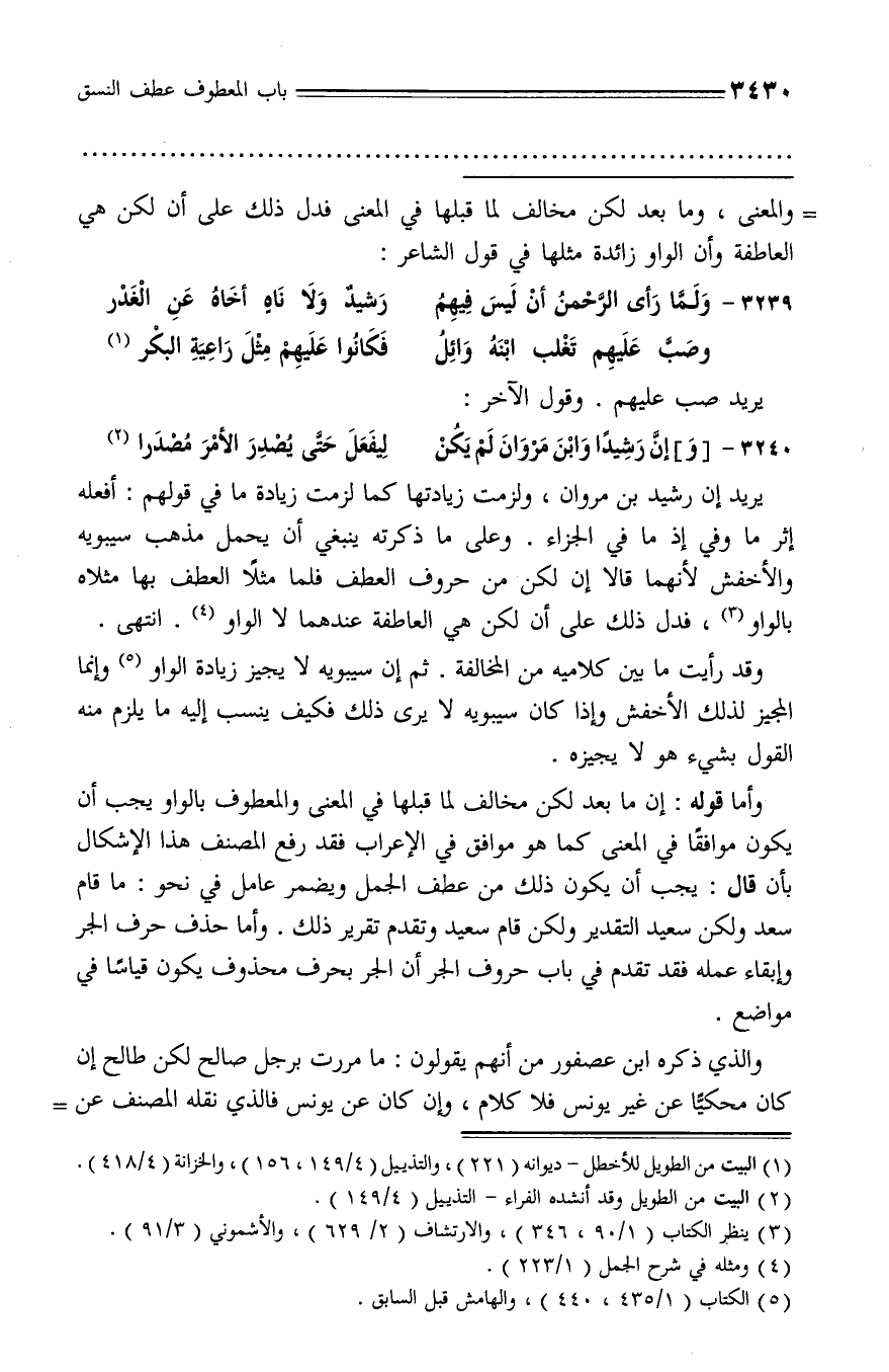وقد رأيت ما بين كلاميه من المخالفة. ثم إن سيبويه لا يجيز زيادة الواو (¬5) وإنما المجيز لذلك الأخفش وإذا كان