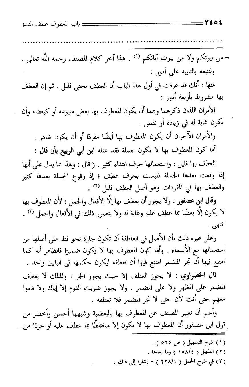 وأعلم أن تعبير المصنف عن المعطوف بها بالبعضية وشبهها أحسن وأخضر من قول ابن عصفور أن المعطوف بها لا يكون إلا مختلطا بما عطف عليه أو جزءا من -