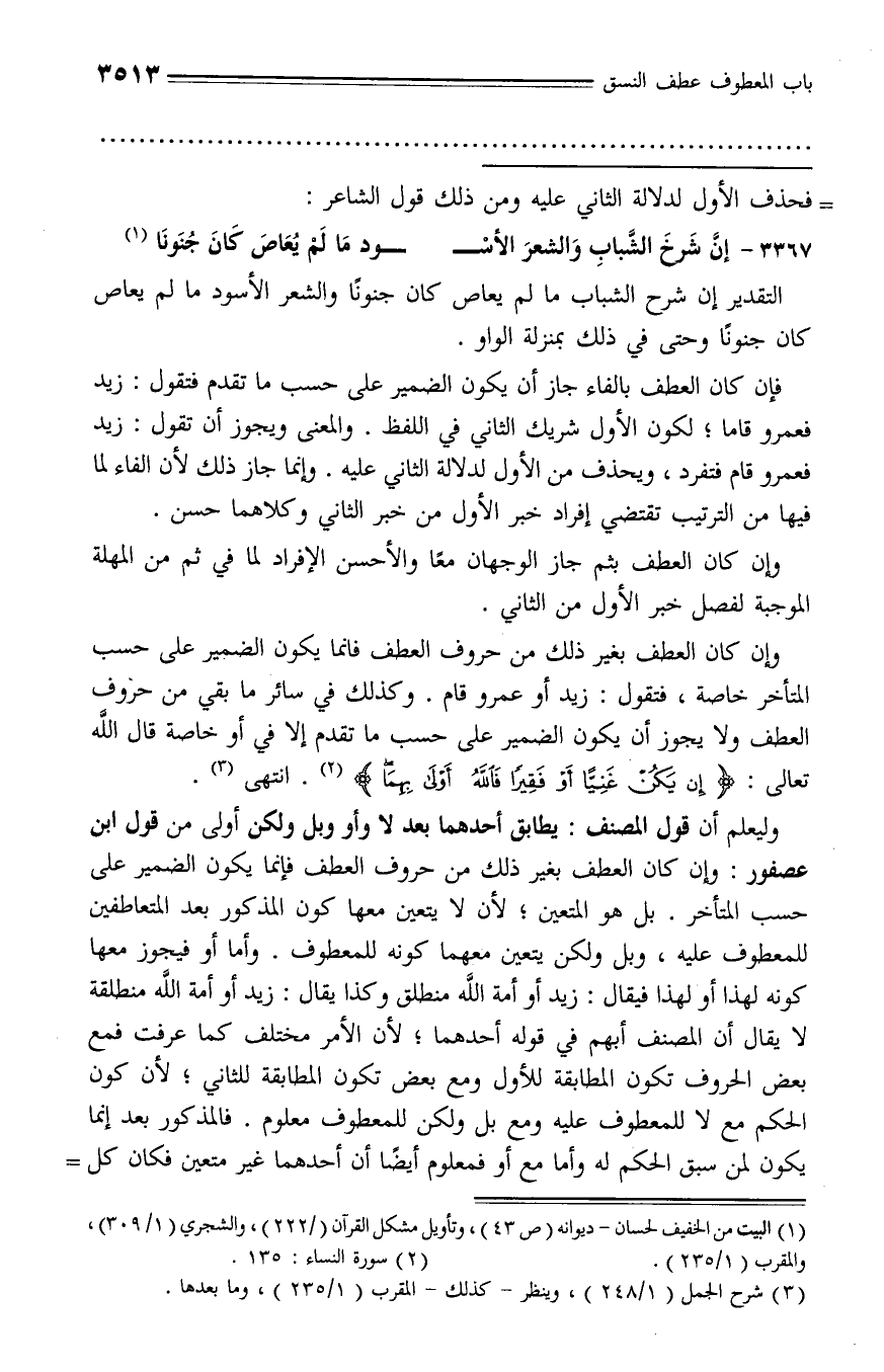 وليعلم أن قول المصنف: يطابق أحدهما بعد لا وأو وبل ولكن أولى من قول ابن عصفور: وإن كان العطف بغير ذلك من حروف العطف فإنما يكون الضمير على حسب المتأخر. بل هو المتعين؛ لأن لا يتعين معها كون المذكور بعد المتعاطفين للمعطوف عليه، وبل ولكن يتعين معهما كونه للمعطوف. وأما أو فيجوز معها كونه لهذا أو لهذا فيقال: زيد أو أمة الله منطلق وكذا يقال: زيد أو أمة الله منطلقة لا يقال أن المصنف أبهم في قوله أحدهما؛ لأن الأمر مختلف كما عرفت فمع بعض الحروف تكون المطابقة للأول ومع بعض تكون المطابقة للثاني؛ لأن كون الحكم مع لا للمعطوف عليه ومع بل ولكن للمعطوف معلوم. فالمذكور بعد إنما يكون لمن سبق الحكم له وأما مع أو فمعلوم أيضا أن أحدهما غير متعين فكان كل -