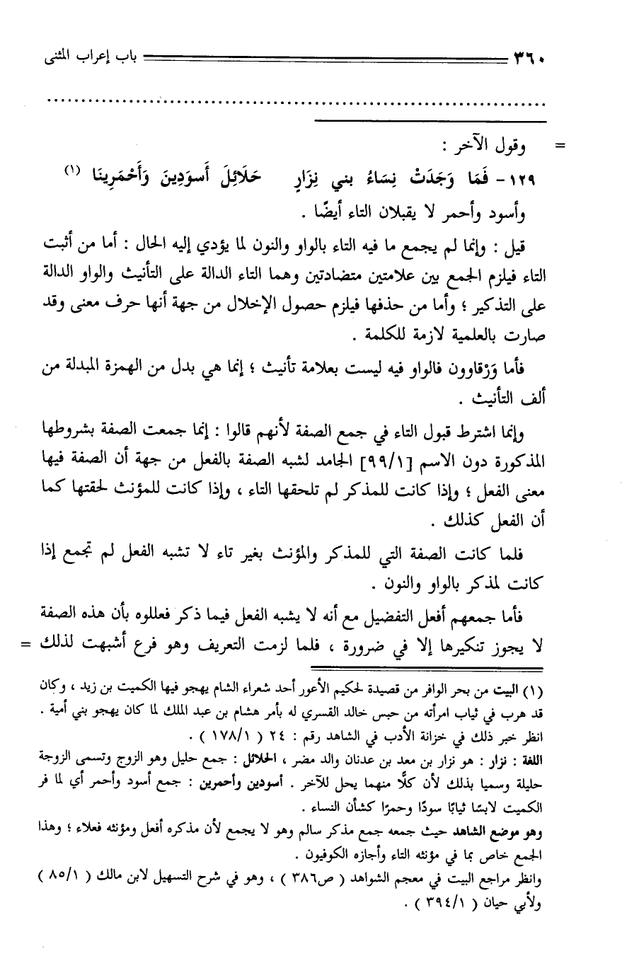 وانظر مراجع البيت في معجم الشواهد (ص 386)، وهو في شرح التسهيل لابن مالك (1/ 85) ولأبي حيان (1/ 394).