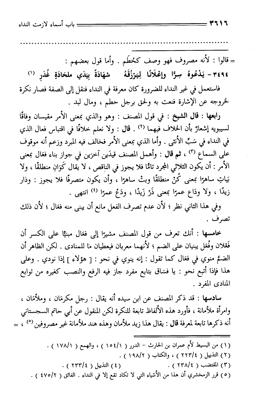 (¬5) قرر الزمخشري أن هذا من الأشياء التي لا تكاد تقع إلا في النداء. الفائق (2/ 475).
