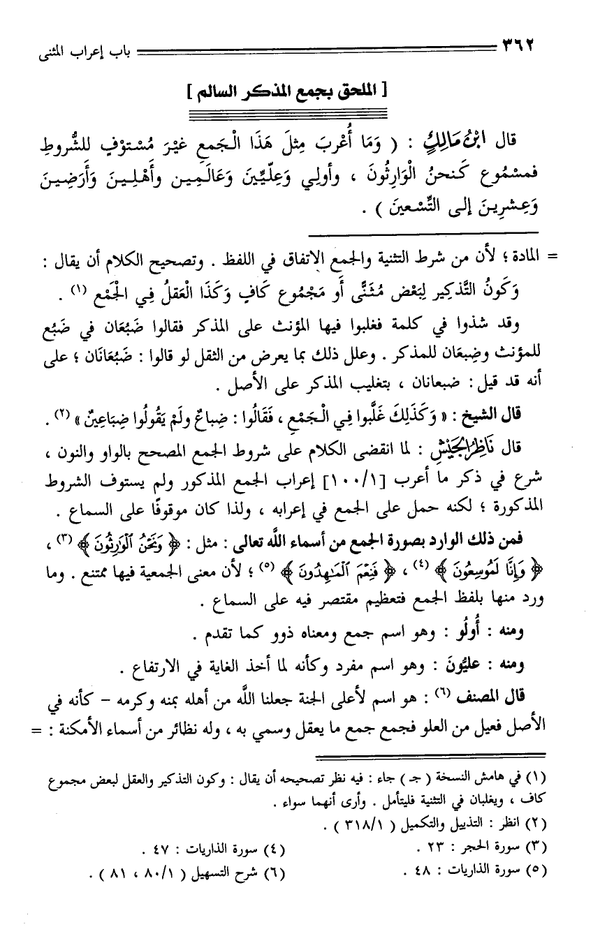 قال ابن مالك: (وما أعرب مثل هذا الجمع غير مستوف للشّروط فمسموع كنحن الوارثون، وأولي وعلّيّين وعالمين وأهلين وأرضين وعشرين إلى التّسعين).