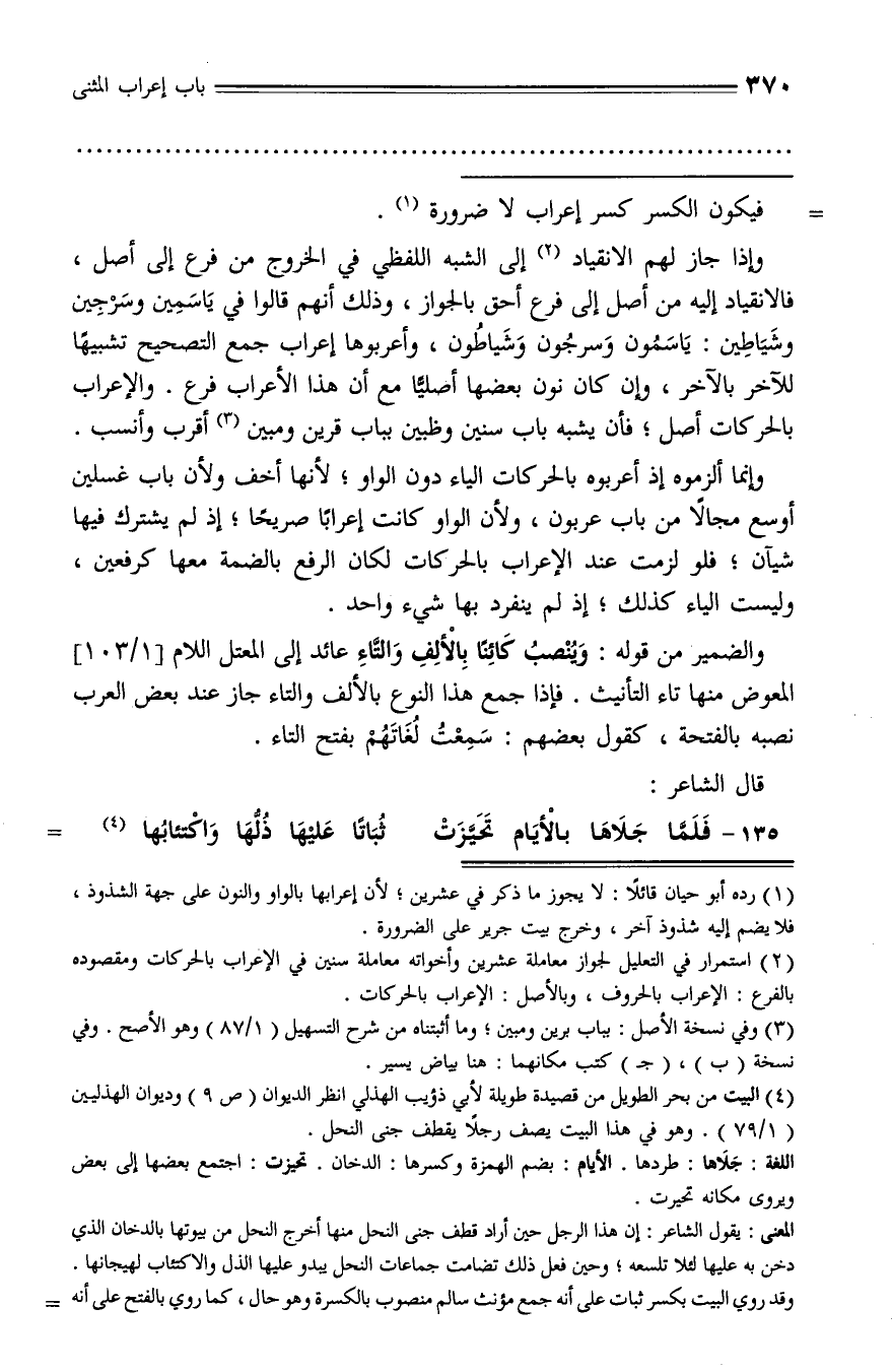 (¬3) وفي نسخة الأصل: بباب برين ومبين؛ وما أثبتناه من شرح التسهيل (1/ 87) وهو الأصح. وفي نسخة (ب)، (جـ) كتب مكانهما: هنا بياض يسير.