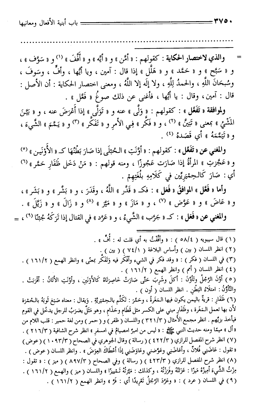 (¬8) انظر شرح المفصل للرازي (3/ 423) (رسالة) وفي الصحاح (3/ 897) (ميز): «تقول: