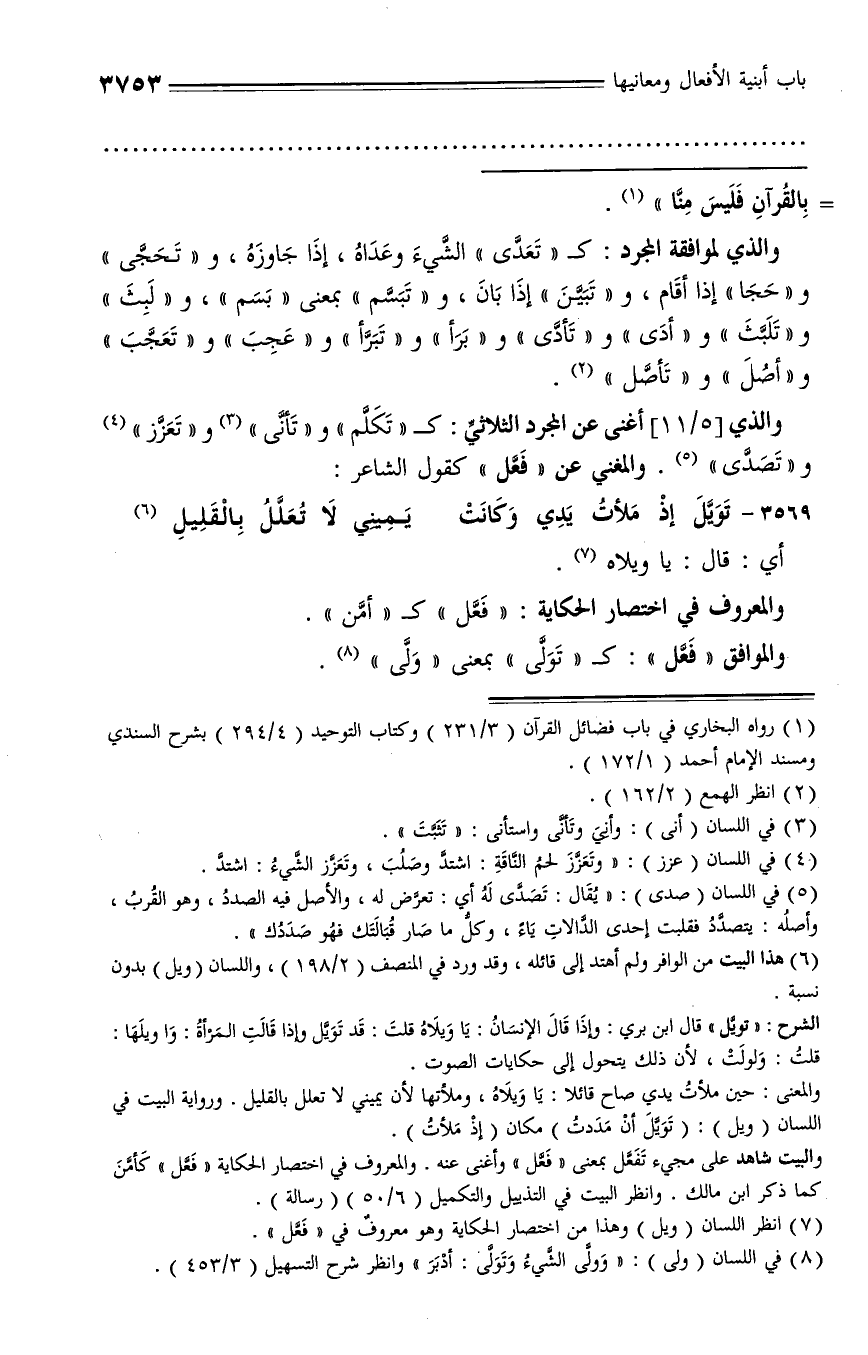 (¬7) انظر اللسان (ويل) وهذا من اختصار الحكاية وهو معروف في «فعّل».