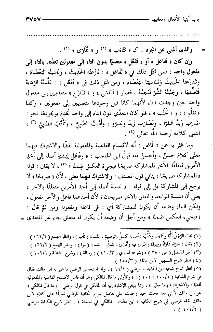 ضارب زيد عمرا، وتضارب زيد وعمرو، وأدّبت الصّبيّ، وتأدّب الصّبيّ (¬3)، انتهى كلامه رحمه الله تعالى (¬4).
