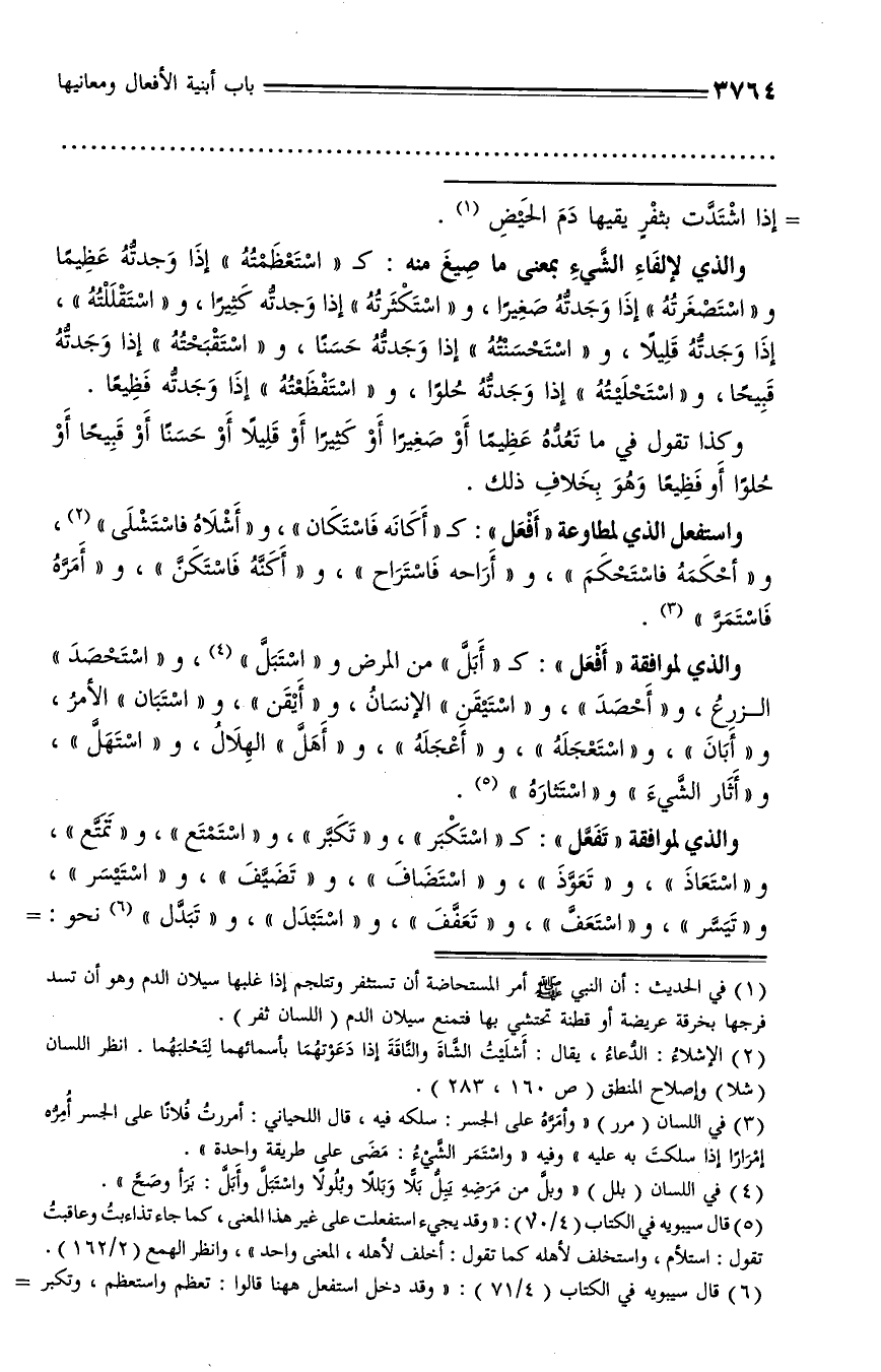 (¬6) قال سيبويه في الكتاب (4/ 71): «وقد دخل استفعل ههنا قالوا: تعظم واستعظم، وتكبر -