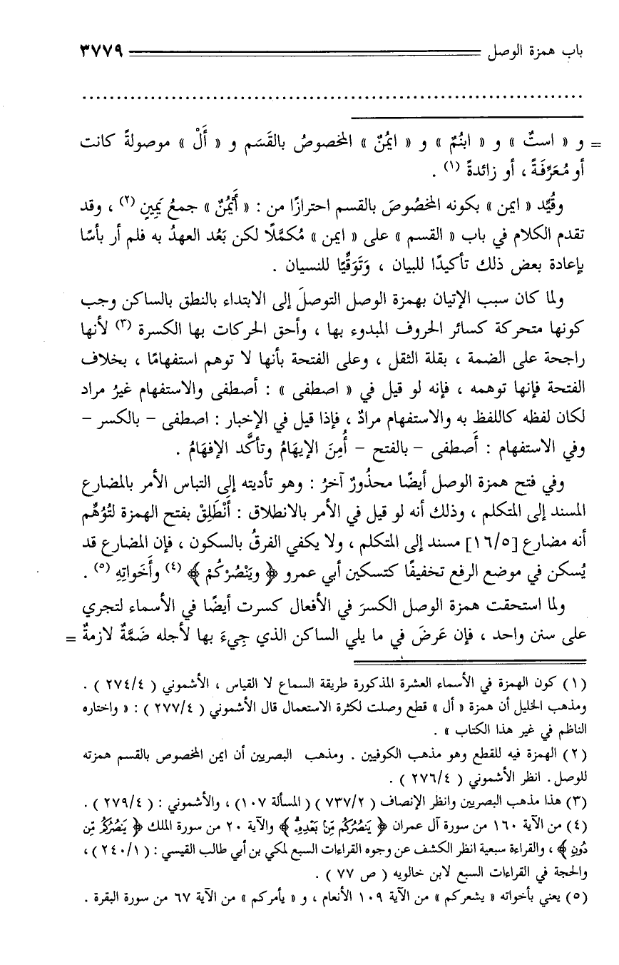 وقيّد «ايمن» بكونه المخصوص بالقسم احترازا من: «أيمن» جمع يمين (¬2)، وقد تقدم الكلام في باب «القسم» على «ايمن» مكمّلا لكن بعد العهد به فلم أر بأسا بإعادة بعض ذلك تأكيدا للبيان، وتوقّيا للنسيان.