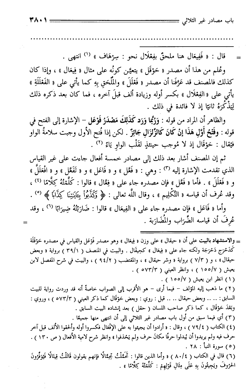 (¬6) قال في الكتاب (4/ 80) «وأما الذين قالوا: تحمّلت تحمّالا فإنهم يقولون قاتلت قيتالا فيوفّرون الحروف ويجيئون به على مثال قولهم: كلّمته كلّاما».