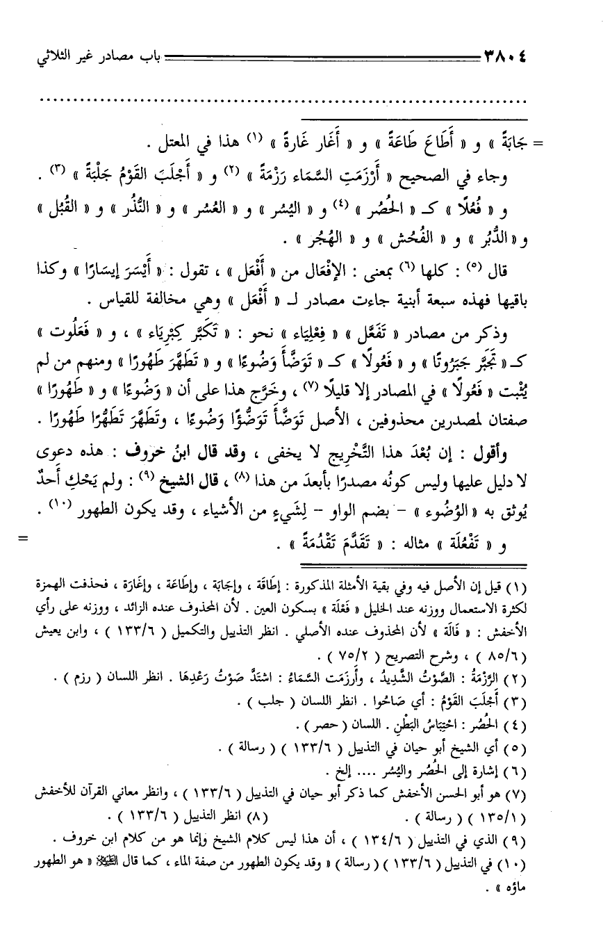 (¬10) في التذييل (6/ 133) (رسالة) «وقد يكون الطهور من صفة الماء، كما قال عليه السّلام «هو الطهور ماؤه».