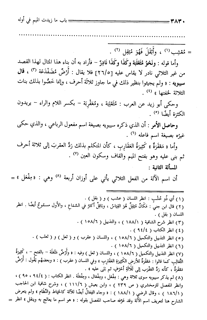 (¬3) انظر شرح الشافية (1/ 188)، والتذييل (6/ 158).