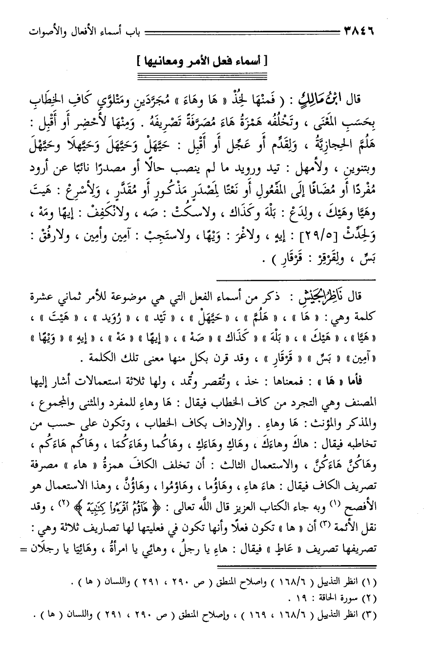 (¬3) انظر التذييل (6/ 168، 169)، وإصلاح المنطق (ص 290، 291) واللسان (ها).