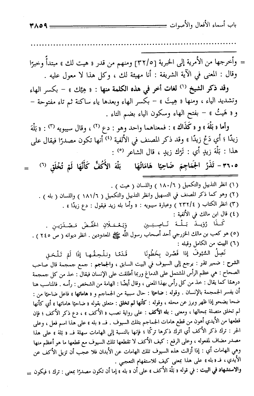 3605 - تذر الجماجم ضاحيا هاماتها ... بله الأكفّ كأنّها لم تخلق (¬6)