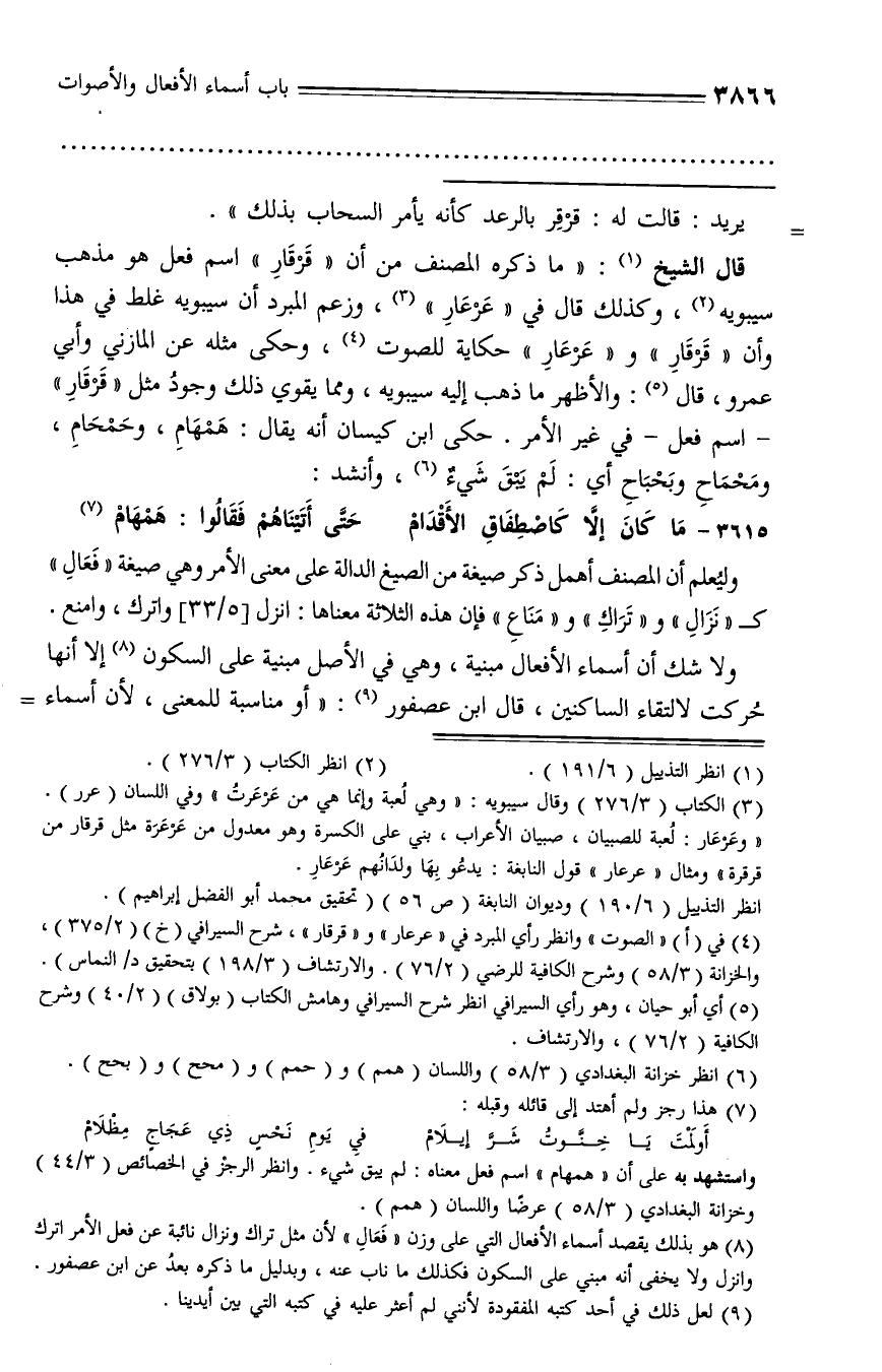 (¬4) في (أ) «الصوت» وانظر رأي المبرد في «عرعار» و «قرقار»، شرح السيرافي (خ) (2/ 375)، والخزانة (3/ 58) وشرح الكافية للرضي (2/ 76). والارتشاف (3/ 198) بتحقيق د/ النماس).