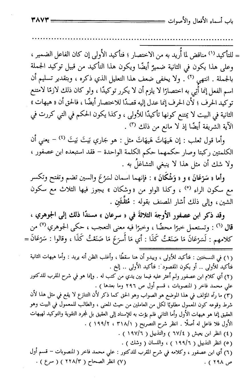 (¬2) أي كلام ابن عصفور ولم أعثر عليه فيما بين يدي من كتب له. وإنما هو في شرح المقرب للدكتور علي محمد فاخر (المنصوبات، قسم أول ص 296 وما بعدها).
