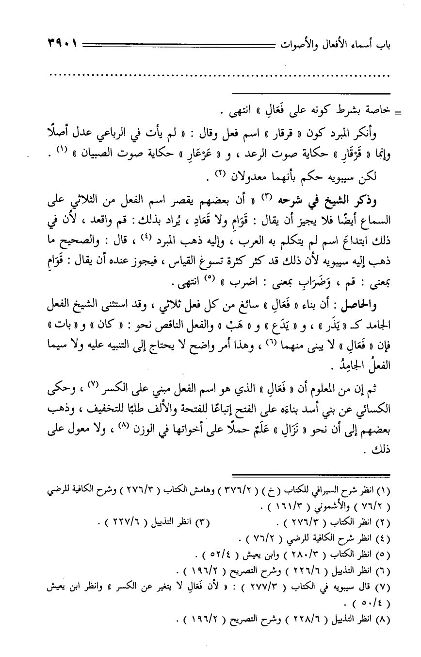(¬7) قال سيبويه في الكتاب (3/ 277): «لأن فعال لا يتغير عن الكسر» وانظر ابن يعيش (4/ 50).