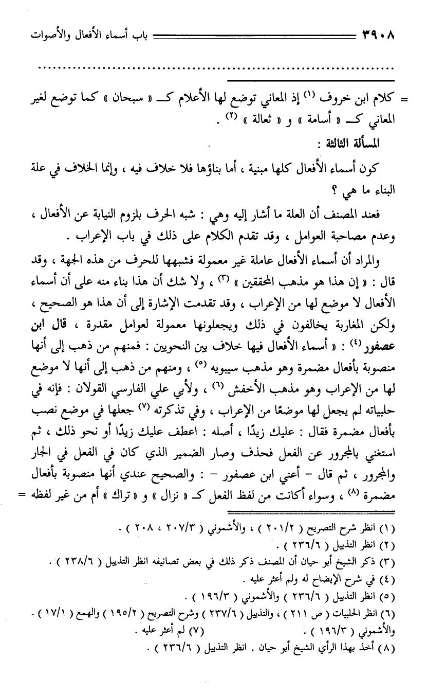 (¬8) أخذ بهذا الرأي الشيخ أبو حيان. انظر التذييل (6/ 236).