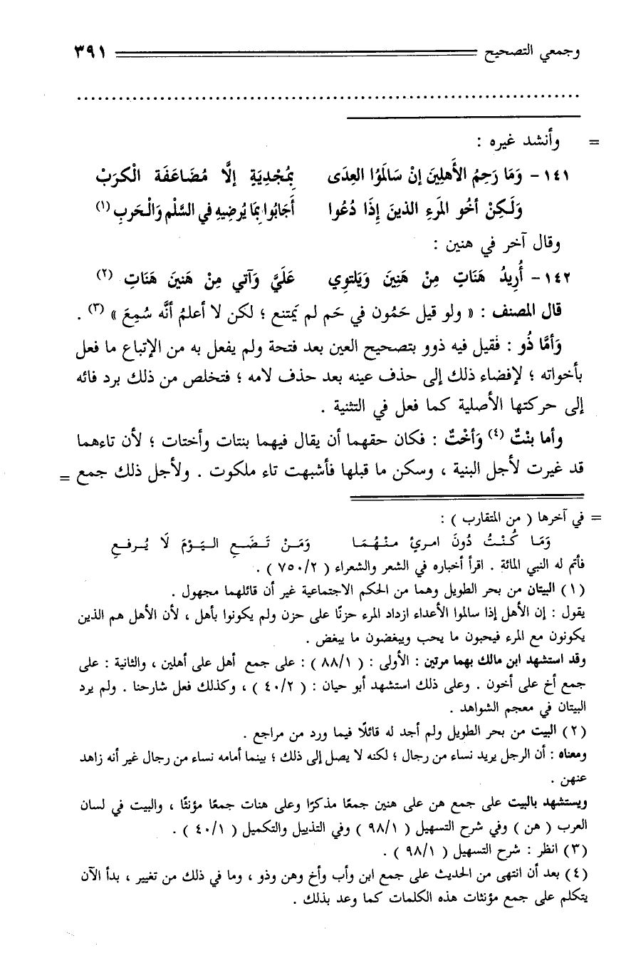 142 - أريد هنات من هنين ويلتوي ... عليّ وآتي من هنين هنات (¬2)