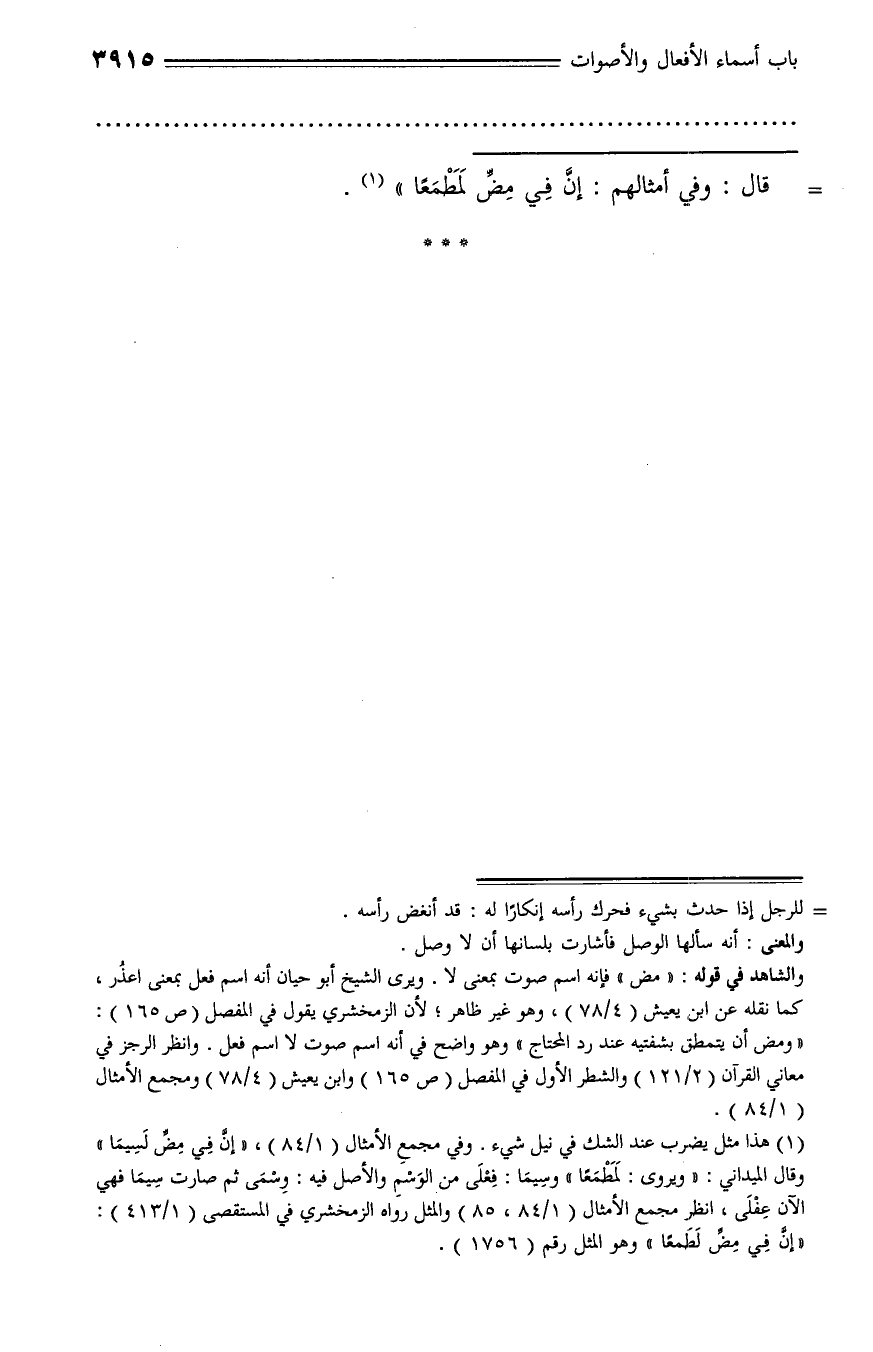 «إنّ في مضّ لطمعا» وهو المثل رقم (1756).