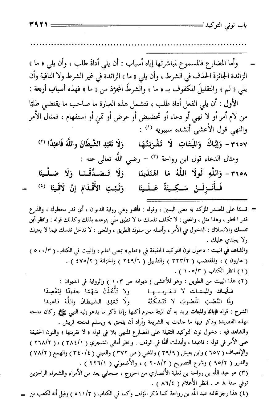 3657 - وإيّاك والميتات لا تقربنّها ... ولا تعبد الشّيطان والله فاعبدا (¬2)