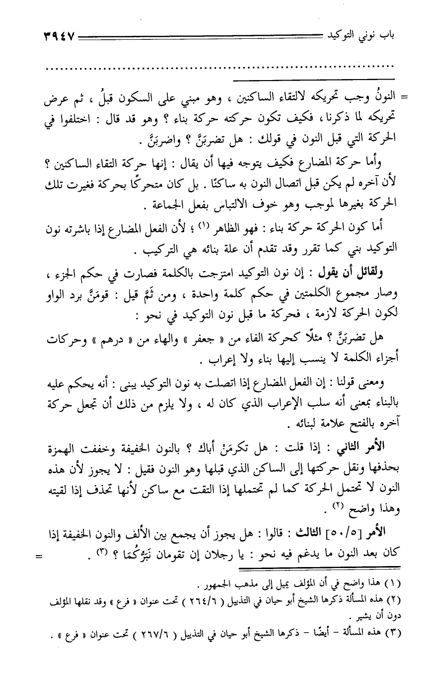 (¬2) هذه المسألة ذكرها الشيخ أبو حيان في التذييل (6/ 264) تحت عنوان «فرع» وقد نقلها المؤلف دون أن يشير.