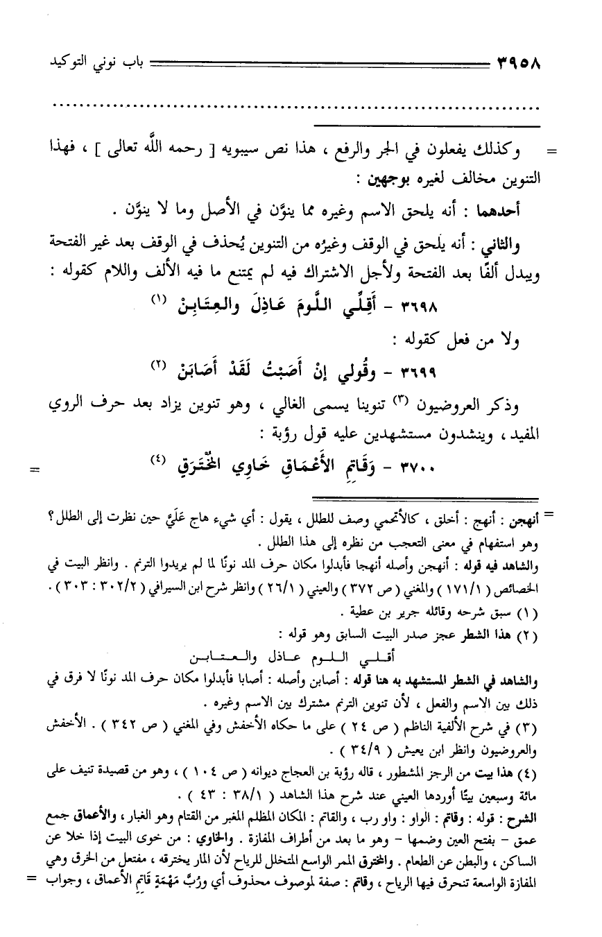 (¬4) هذا بيت من الرجز المشطور، قاله رؤبة بن العجاج ديوانه (ص 104)، وهو من قصيدة تنيف على مائة وسبعين بيتا أوردها العيني عند شرح هذا الشاهد (1/ 38: 43).