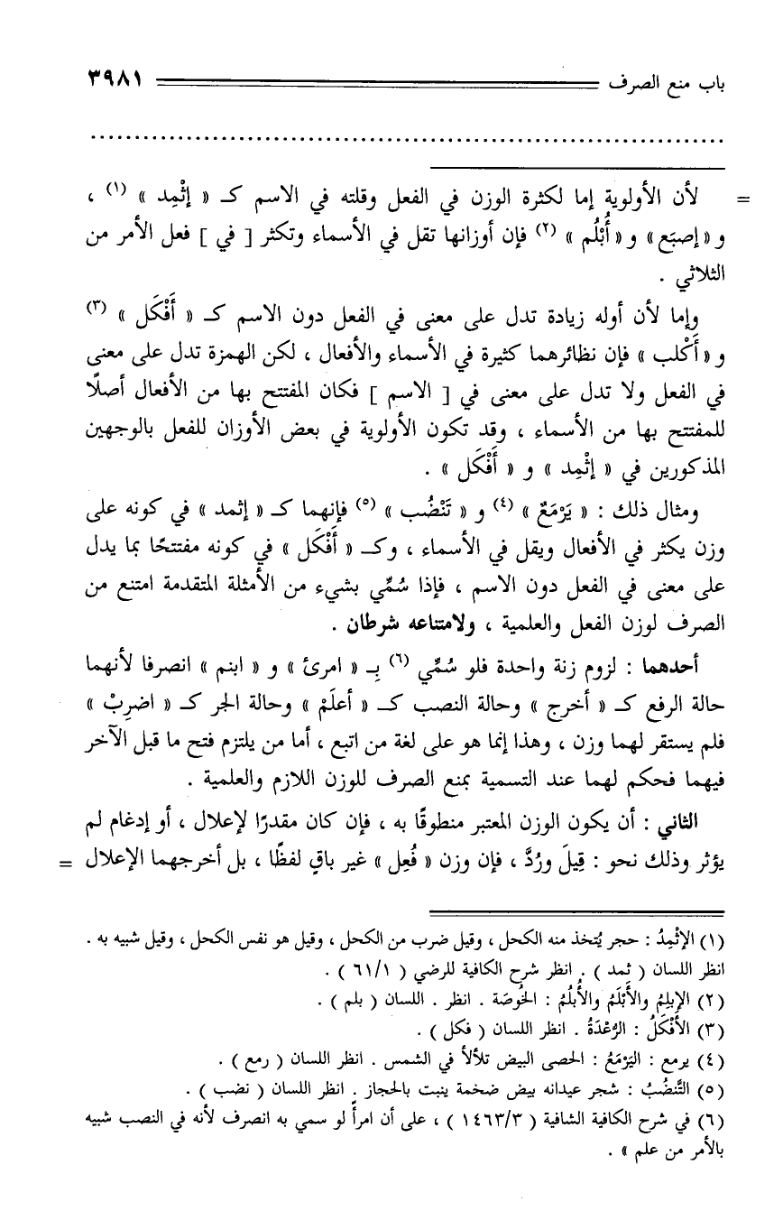 (¬6) في شرح الكافية الشافية (3/ 1463)، على أن امرأ لو سمي به انصرف لأنه في النصب شبيه بالأمر من علم».