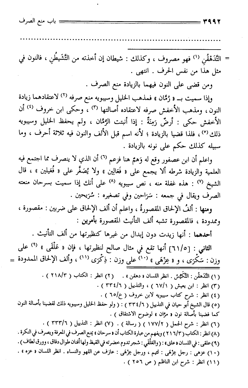 (¬8) انظر: الكتاب (3/ 216) ويفهم من عبارة الكتاب أن «سرحان» يمنع الصرف في المعرفة ويصرف في النكرة.