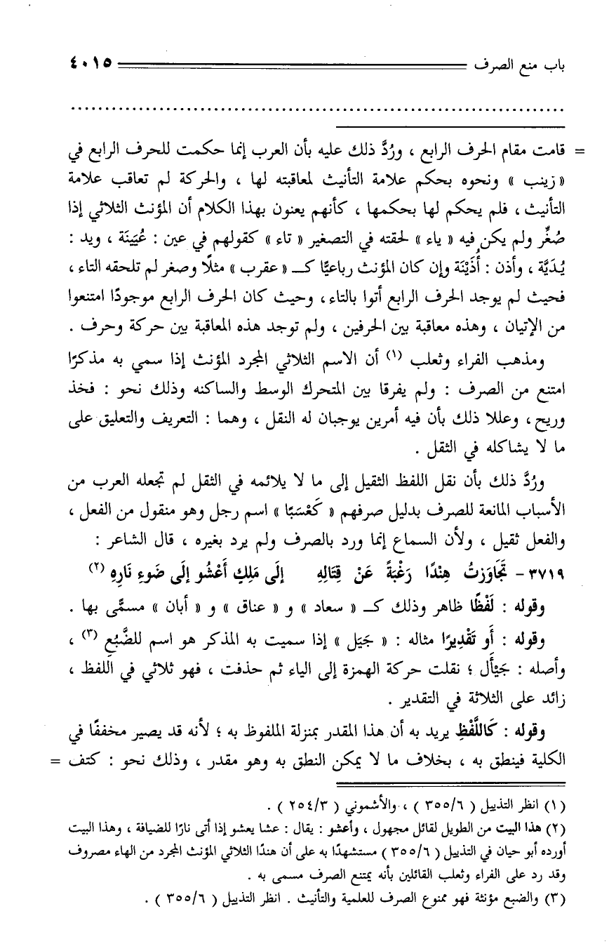 (¬3) والضبع مؤنثة فهو ممنوع الصرف للعلمية والتأنيث. انظر التذييل (6/ 355).