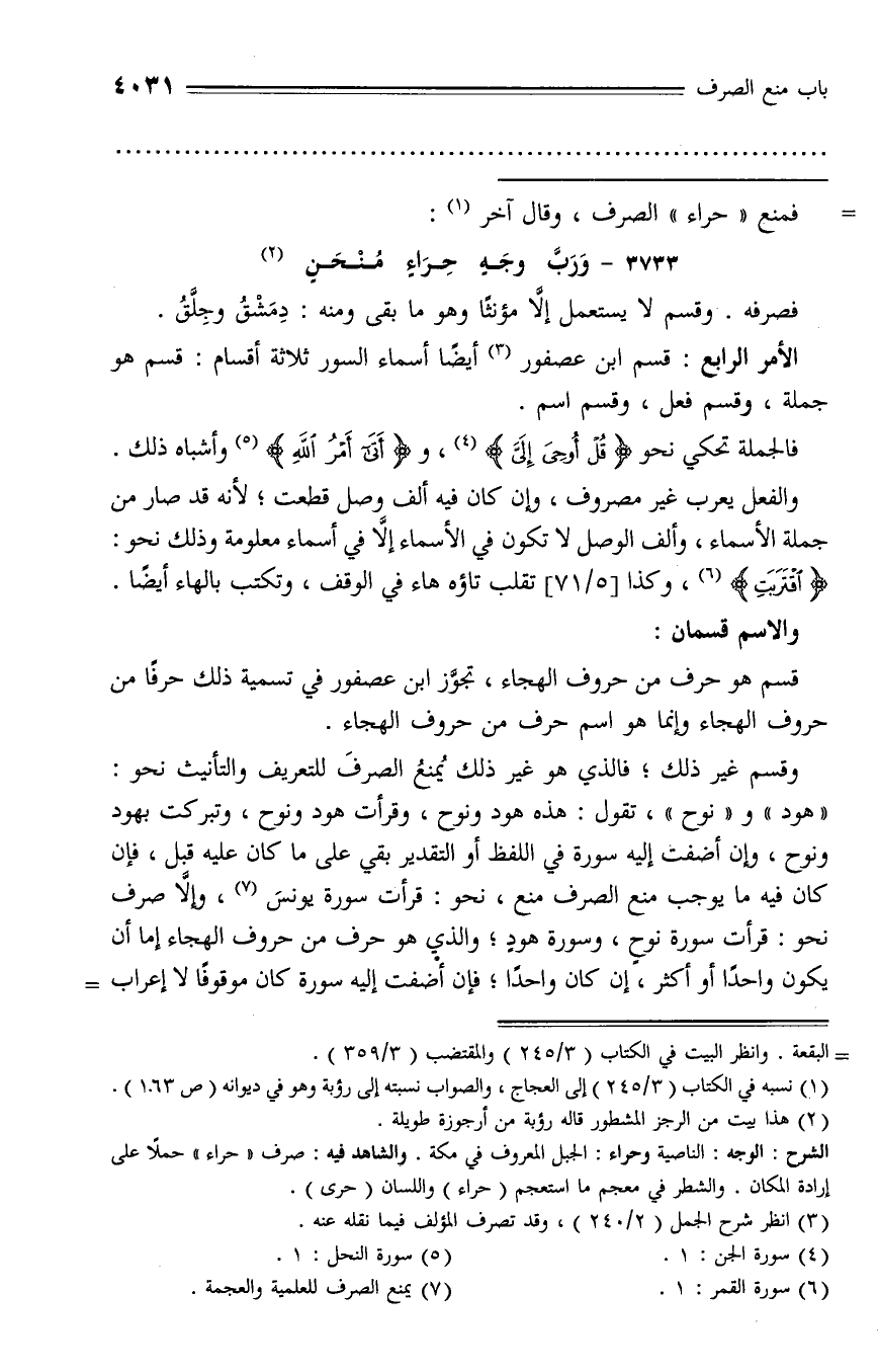 الأمر الرابع: قسم ابن عصفور (¬3) أيضا أسماء السور ثلاثة أقسام: قسم هو جملة، وقسم فعل، وقسم اسم.