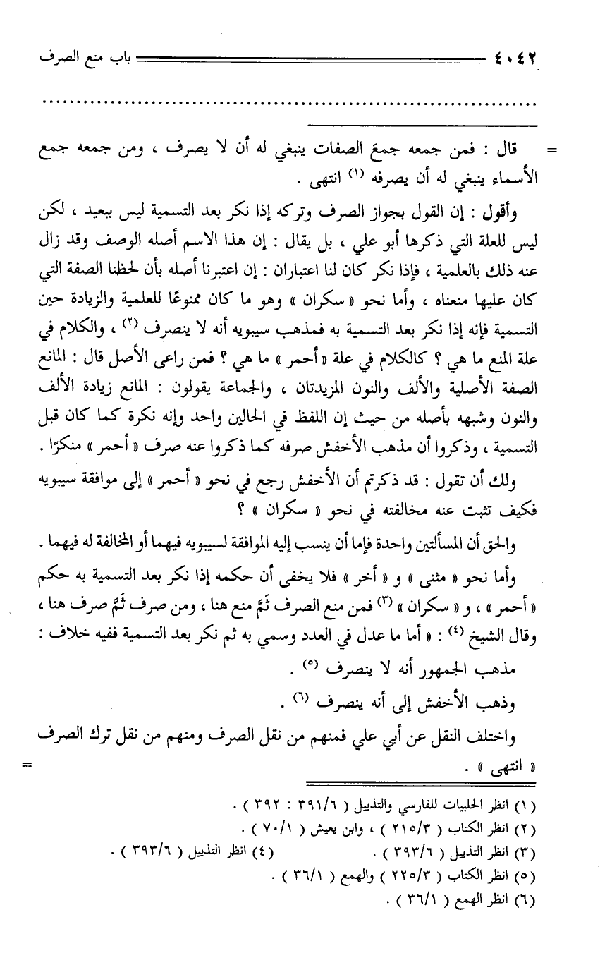 واختلف النقل عن أبي علي فمنهم من نقل الصرف ومنهم من نقل ترك الصرف «انتهى». -